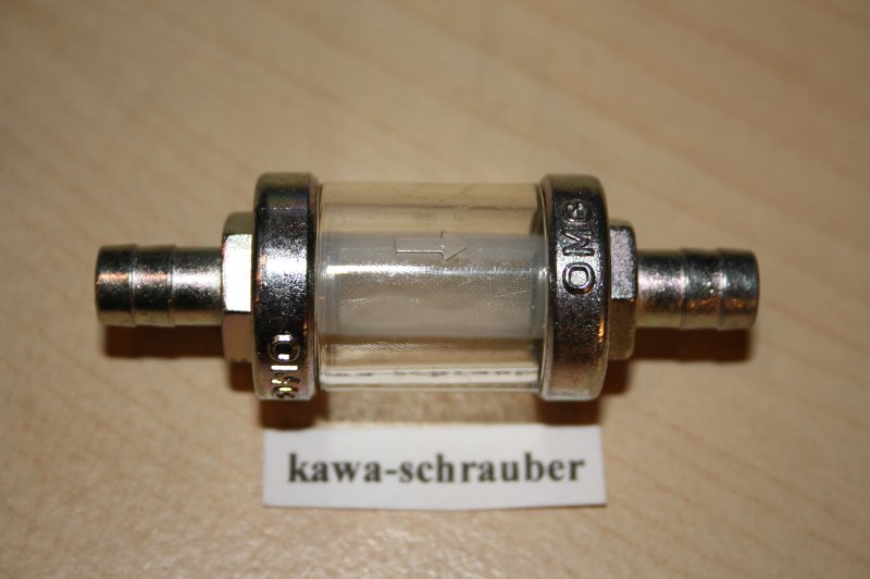 Dieser Benzinfilter hat ein robustes Metallgehäuse, der Filter ist aufschraubbar und kann gereinigt werden! Das Sieb ist aus Plastik, kann also nicht rosten. Bei Einbau bitte die Fließrichtung beachten (Pfeil muß nach oben zeigen). Anschlußweite (Durchmesser) 8mm, Durchlaß 4mm