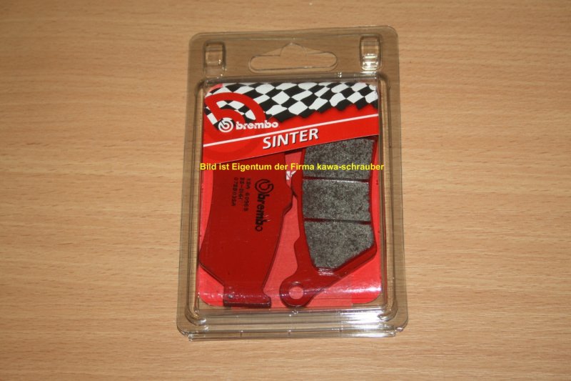 Sinter SA mit Straßenzulassung ( KBA-Nummer ist auf der Rückseite eingestempelt) nur für das Vorderrad Sintermischungen bestehen aus Metallanteilen, die mit Schmierstoffen und Schleifmitteln vemischt und bei hohen Temperaturen miteinander verpresst werden. Die Mischung wird während der Sinterung ohne Verwendung von Klebstoffen auf einer Trägerplatte mit der gewünschten Form fixiert. Die Metallanteile bestimmen den Reibwert der Bremsbeläge, die Schmierstoffe halten die Bremsscheiben sauber.