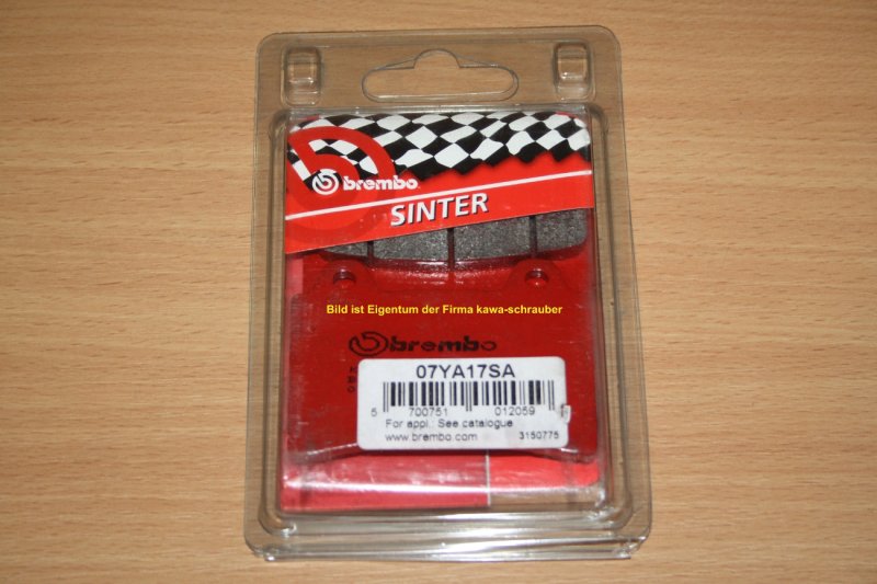 Sinter SA mit Straßenzulassung ( KBA-Nummer ist auf der Rückseite eingestempelt) nur für das Vorderrad Sintermischungen bestehen aus Metallanteilen, die mit Schmierstoffen und Schleifmitteln vemischt und bei hohen Temperaturen miteinander verpresst werden. Die Mischung wird während der Sinterung ohne Verwendung von Klebstoffen auf einer Trägerplatte mit der gewünschten Form fixiert. Die Metallanteile bestimmen den Reibwert der Bremsbeläge, die Schmierstoffe halten die Bremsscheiben sauber.
