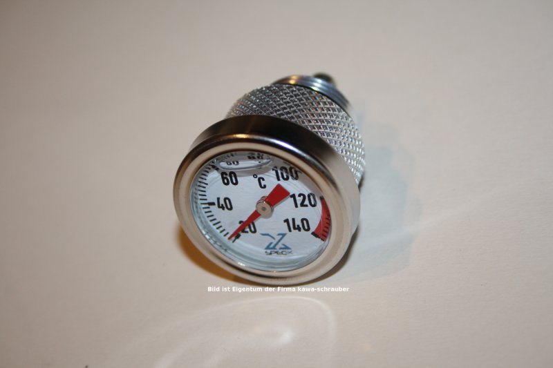 Ein Motorradmotor sollte immer auf Betriebstemperatur sein, bevor er seine Leistung voll entfaltet. Das schont alle Bauteile und sorgt für Langlebigkeit. Die Temperaturanzeige im Cockpit (sofern vorhanden) zeigt in der Regel die Wassertemperatur an. Wichtig ist aber die Öltemperatur!  Mit unseren Qualitäts-Thermometern kannst Du die Öltemperatur genau ablesen und haben immer mit einem kurzen Blick den Überblick! Ein roter Bereich ist bei fast allen Ölthermometern im Schauglas gekennzeichnet, eventuelle Motorüberhitzungen können sofort festgestellt werden, da das Thermometer unmittelbar reagiert, immerhin sitzt es genau da, wo auch die Temperatur gemessen werden soll! Einfache Montage. Die Thermometer werden einfach anstelle der Öleinfüllschraube eingesetzt. Der mitgelieferte Gummiring (hitzefest) sorgt für die Dichtigkeit. Im Schauglas befindet sich eine Luftblase, das ist kein Konstruktionsmangel, sondern hat etwas mit der Kühlung (Ausdehnung Kühlflüssigkeit) im Schauglas selbst zu tun. Die Qualität der Teile ist wie immer bei uns von allererster Wahl!