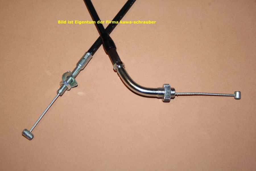 Hier unten sehen Sie große Abbildungen des kompletten Gaszugs, sowie der beiden Enden.
