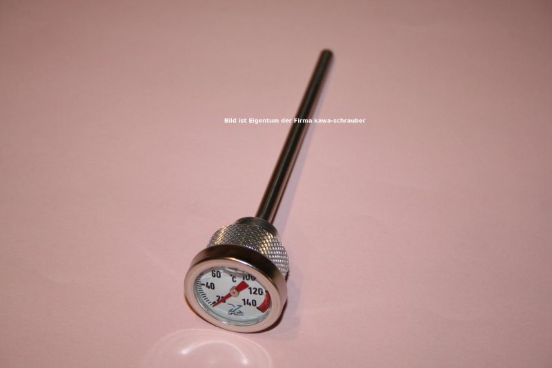 Ein Motorradmotor sollte immer auf Betriebstemperatur sein, bevor er seine Leistung voll entfaltet. Das schont alle Bauteile und sorgt für Langlebigkeit. Die Temperaturanzeige im Cockpit (sofern vorhanden) zeigt in der Regel die Wassertemperatur an. Wichtig ist aber die Öltemperatur!  Mit unseren Qualitäts-Thermometern kannst Du die Öltemperatur genau ablesen und haben immer mit einem kurzen Blick den Überblick! Ein roter Bereich ist bei fast allen Ölthermometern im Schauglas gekennzeichnet, eventuelle Motorüberhitzungen können sofort festgestellt werden, da das Thermometer unmittelbar reagiert, immerhin sitzt es genau da, wo auch die Temperatur gemessen werden soll! Einfache Montage. Die Thermometer werden einfach anstelle der Öleinfüllschraube eingesetzt. Der mitgelieferte Gummiring (hitzefest) sorgt für die Dichtigkeit. Im Schauglas befindet sich eine Luftblase, das ist kein Konstruktionsmangel, sondern hat etwas mit der Kühlung (Ausdehnung Kühlflüssigkeit) im Schauglas selbst zu tun. Die Qualität der Teile ist wie immer bei uns von allererster Wahl!