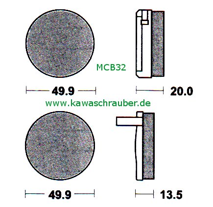 Hier gibt es original Lucas/TRW  Scheibenbremsbeläge mit ABE / TÜV     Bezeichnung: MCB032 oder MCB32   Ausführung: organisch / Standard  die Abmessungen (in Millimeter) entnehme bitte der A...