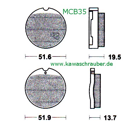 Hier gibt es original Lucas/TRW  Scheibenbremsbeläge mit ABE / TÜV      Bezeichnung: MCB035 oder MCB35  Ausführung: organisch / Standard  die Abmessungen (in Millimeter) entnehme bitte d...