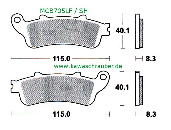 Hier gibt es original Lucas/TRW Scheibenbremsbeläge mit ABE / TÜV     Bezeichnung: MCB705SH Ausführung: SH (Sintermetall, nur Hinterrad)  die Abmessungen (in Millimeter) entnehme bitte der Abbil...