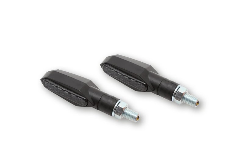 Der moderne Blinker mit zwei Gesichtern durch einen innovativen Leuchtstreifen auf der Rückseite. Die neuste Lichttechnik im robusten Kunststoffgehäuse in Schwarz, mit Gummistiel und getöntem Glas ist E-geprüft für vorne und hinten.