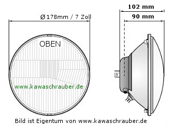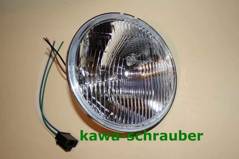 Komplettes Ersatzglas (H4) für Kawasaki incl. 12Volt H4 Glühlampe, Standlicht und Kabelsatz!